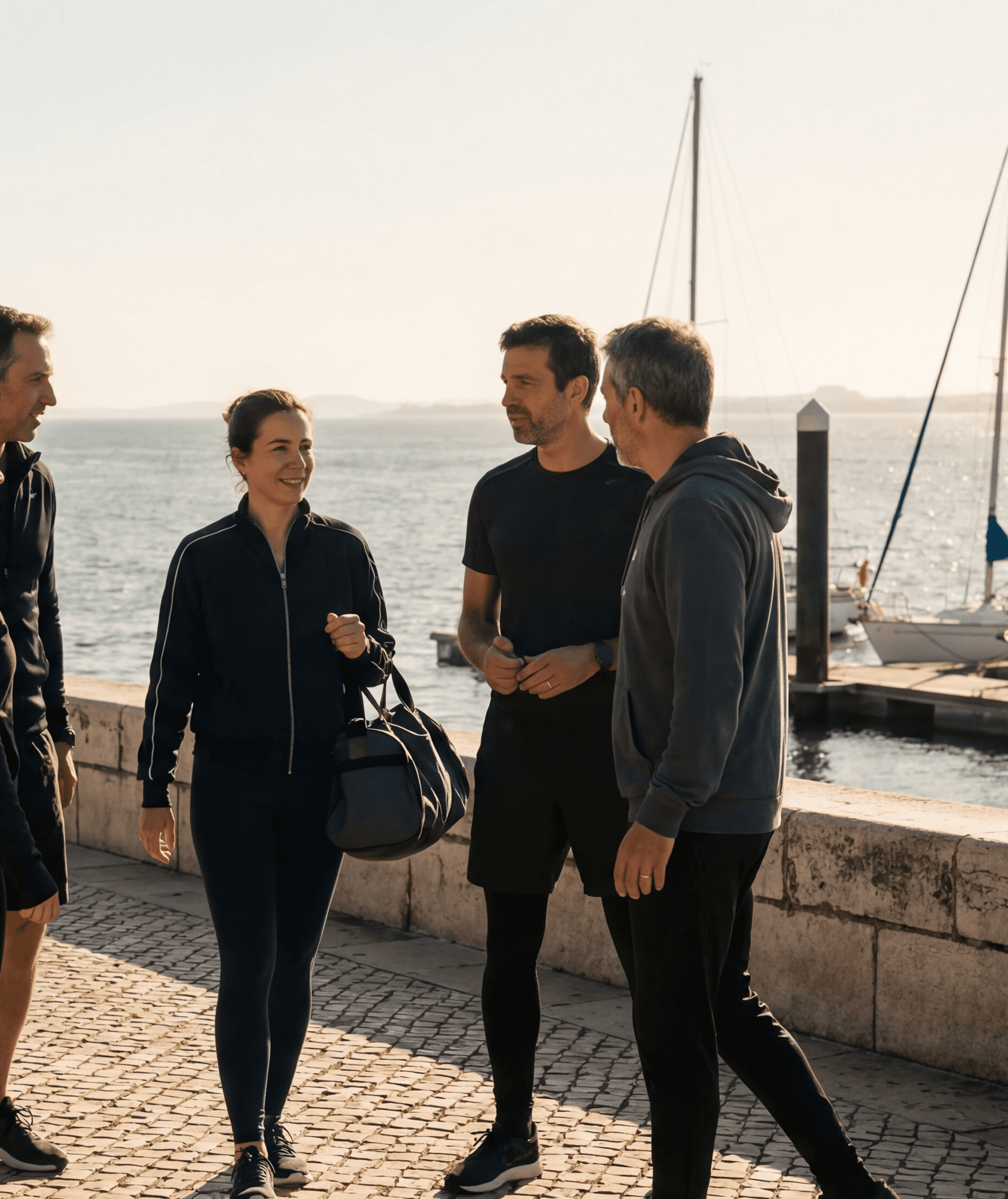 Every session is group-based and outdoors. We combine strength and cardio exercises in a guided structure. Intensity scales to your level and